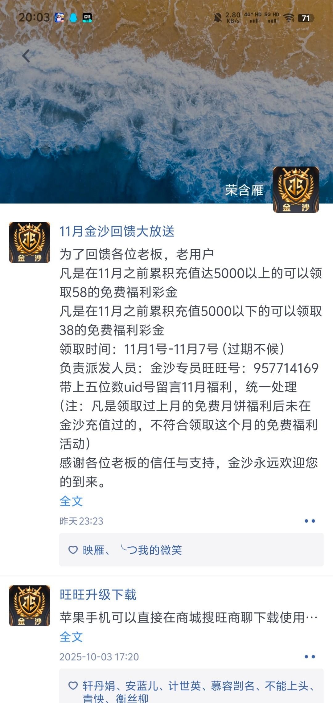 负责派发人员:金沙专员旺旺号:957714169 带上五位数uid号留言11月福利,统一处理