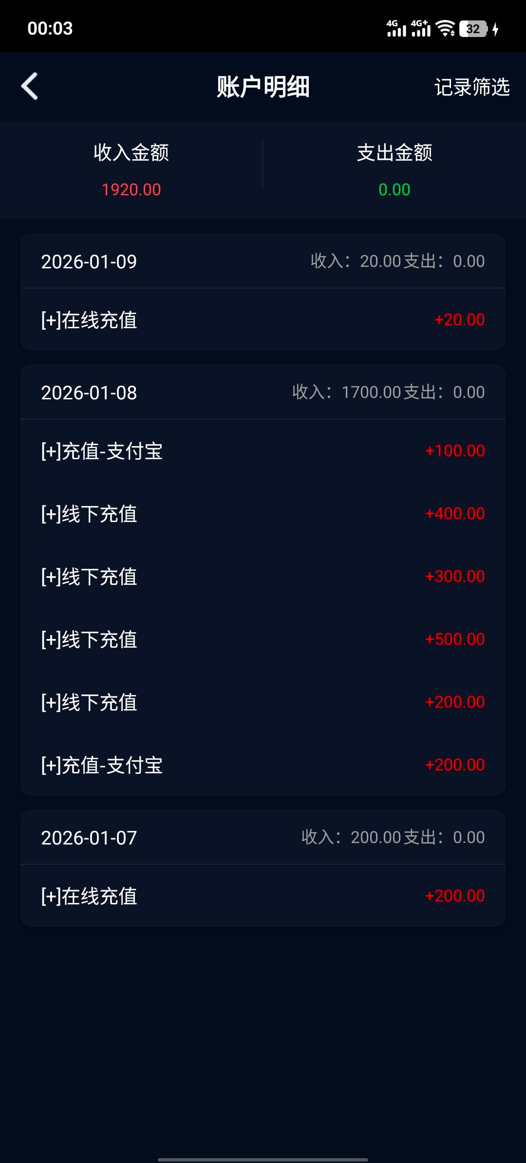 已充值三天