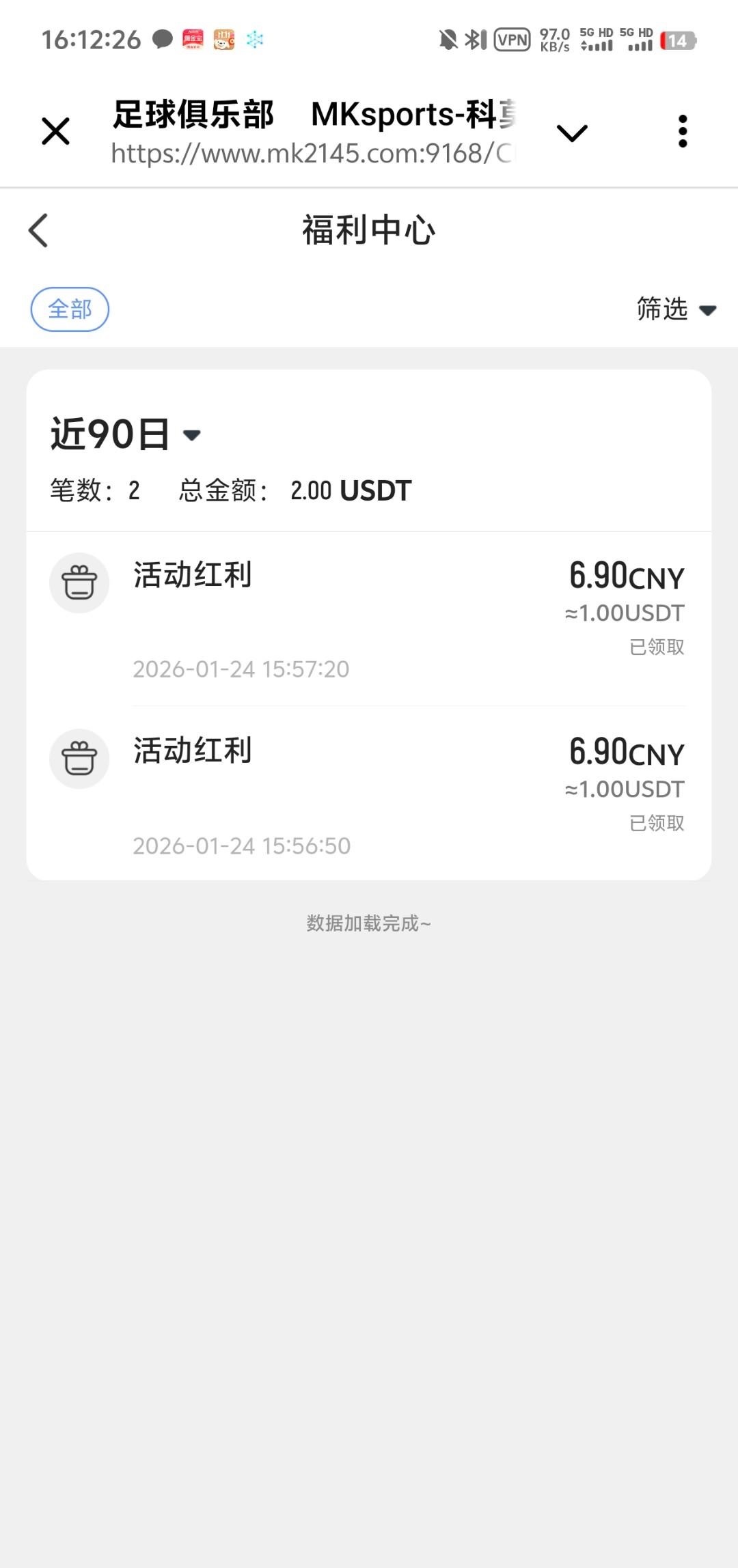 我注册的时候送了2u,这个好像是狗带送的,不一定注册就有。官网mk.com