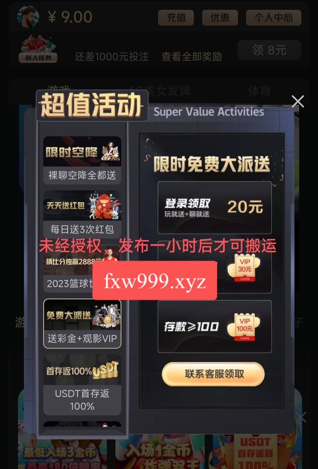 新用户下载进去点游戏直接领一个红包6元优惠里面再领3元右上角下载APP找再客服领取8元。