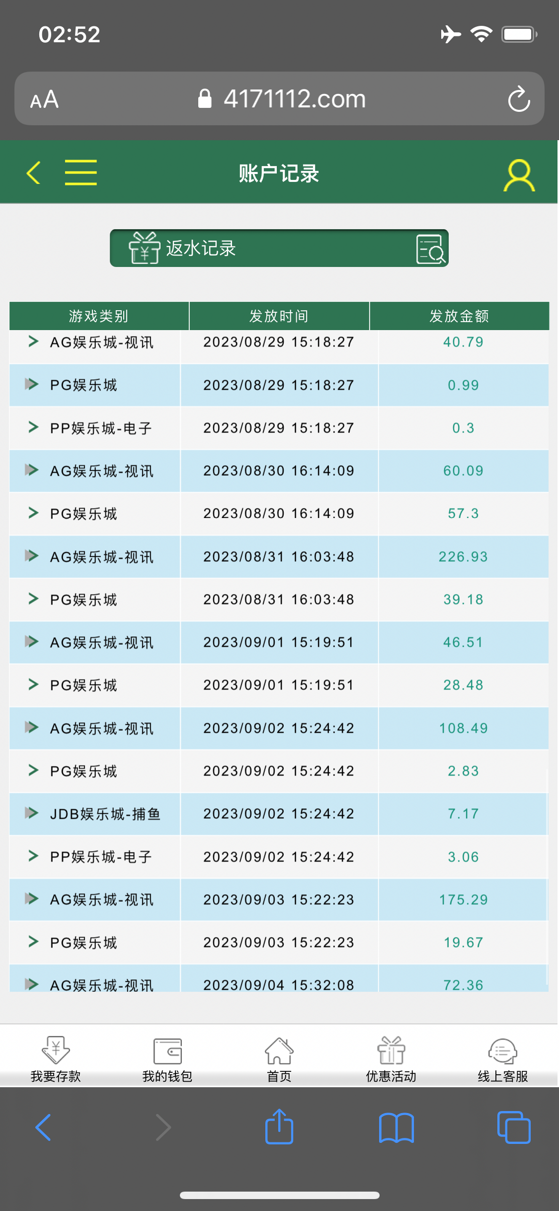 30本金玩电子上到四百提银行卡给我拒绝提现 想着不给提就算了 然后去梭哈Ag 玩到一千块 提到钱能钱包 到账了 之后就一直充提 玩Ag一直陆陆续续赢 然后提钱能钱包 又冲又提 最高上到2.1w 而且2.1w都全部到账钱能钱包了 反水撸了一千多 加上钱能钱包存取款那个活动 存取款彩金撸了一千多 总是感觉还能赢。上头两个小时全部挂完 一下清醒了 人心不足蛇吞象 狗庄不怕你赢 钱 就怕你不玩 输完了 睡得着了
