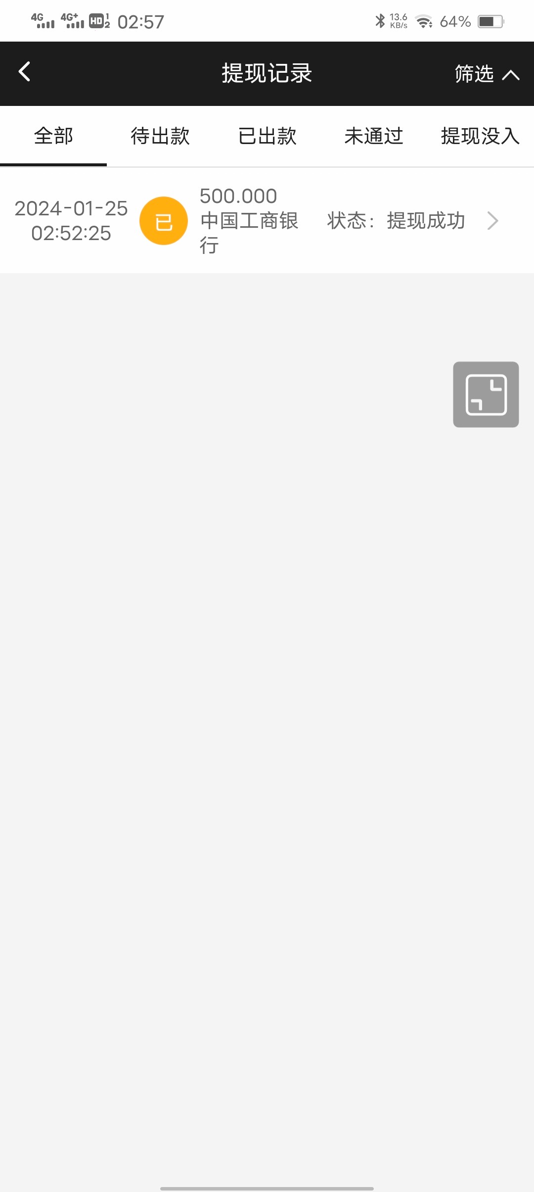 佳佳呀 老哥,提款到账没