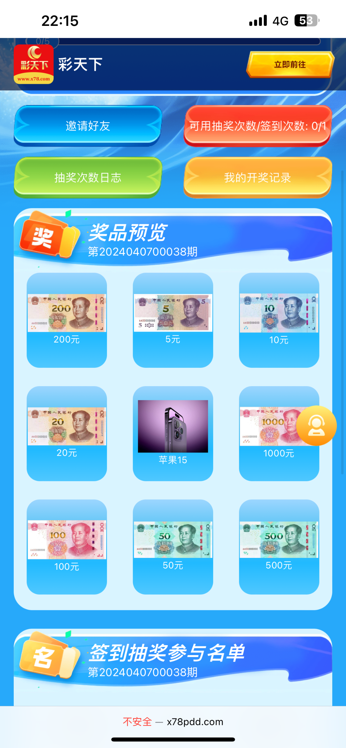 抽奖了,但是彩天下没有邀请码根本注册不了啊