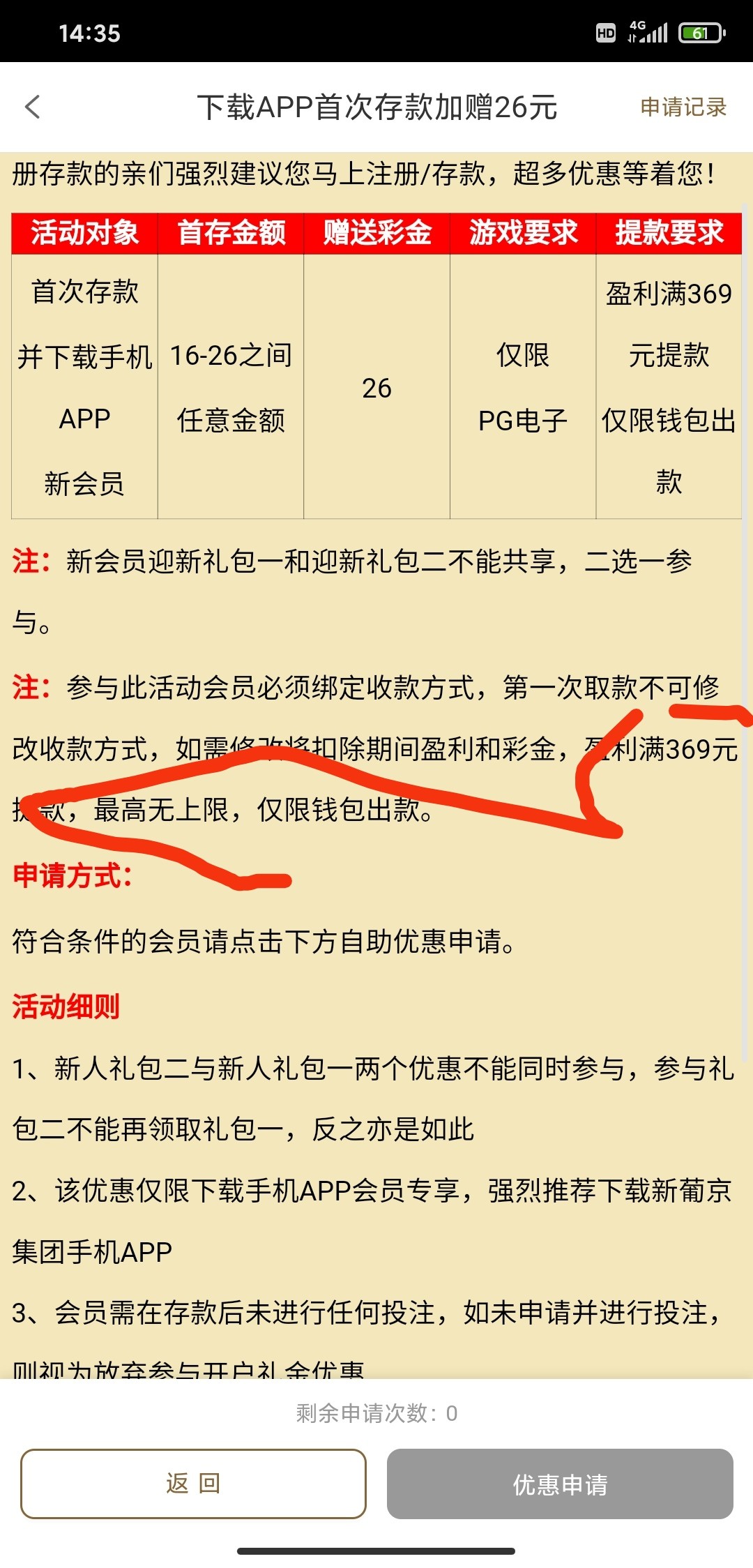 新用户下载app注册绑卡,完善信息,到优惠里面第一个填写号码,特邀秒到账36彩金,此链接是最新特邀链接,没有领过优惠的都可以试试,特邀碰瓷,具体自测!