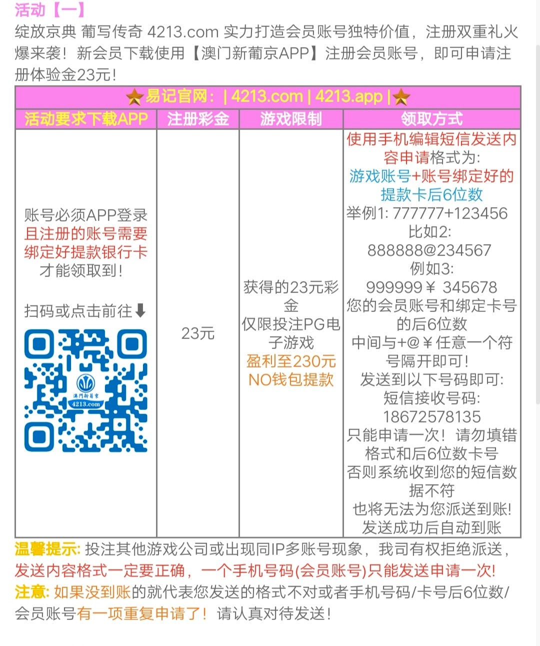 下载注册登录绑定银行卡,按要求发信息申请23元注册彩金,这种台不是都给,动不动多IP,试试吧万一给呢。