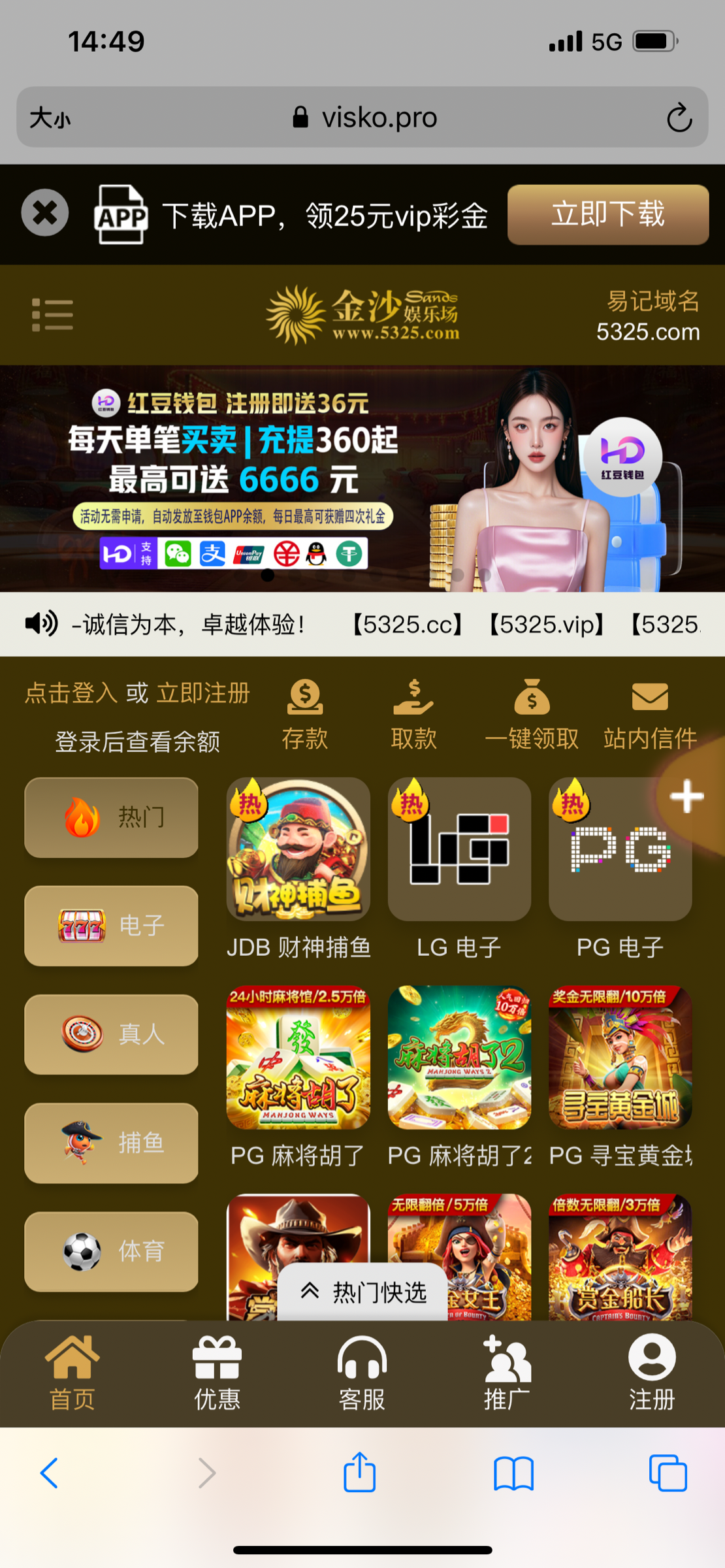 5325金沙,现在垃圾的很,上次充了200,赢了400说我流水低不给出款,让我打流水,只能打老虎机,最后400拉没了,他玛的,他就是个诈骗台。现在分逼不充。