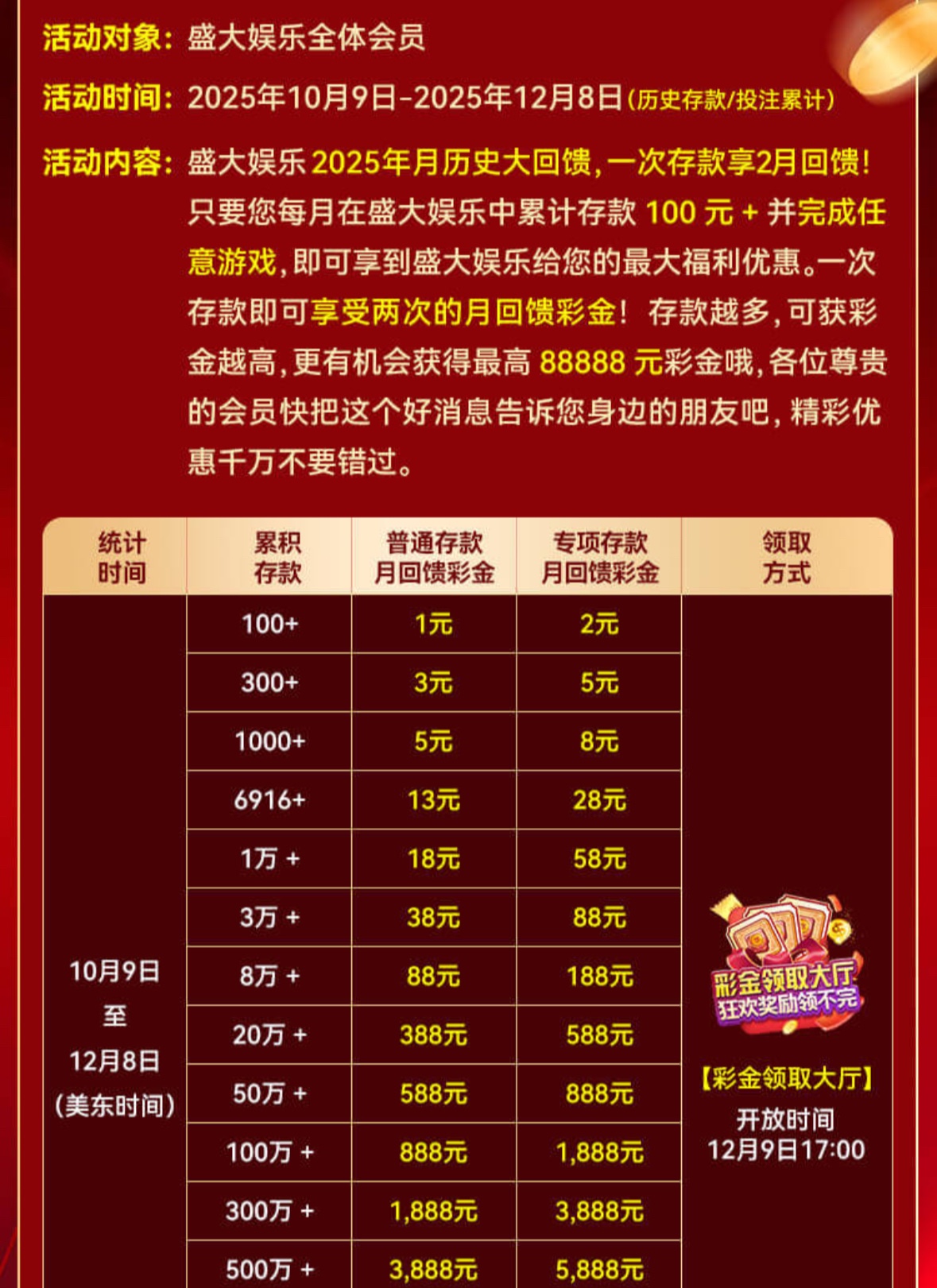 【盛大娱乐】存款回馈