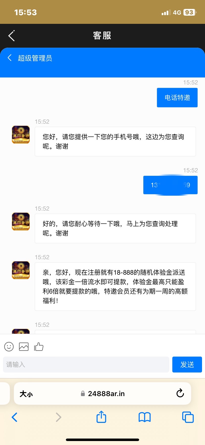 新用户注册联系在线客服申请电话特邀彩金,需要提供手机号,特邀碰瓷!
