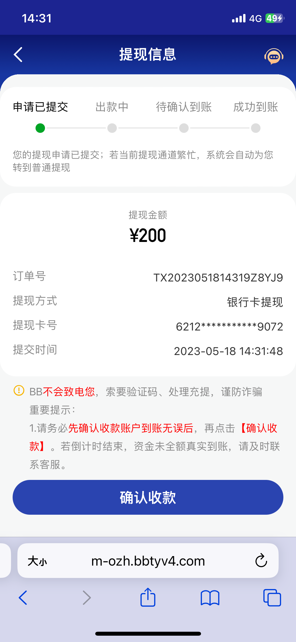 提了100  三小时到账